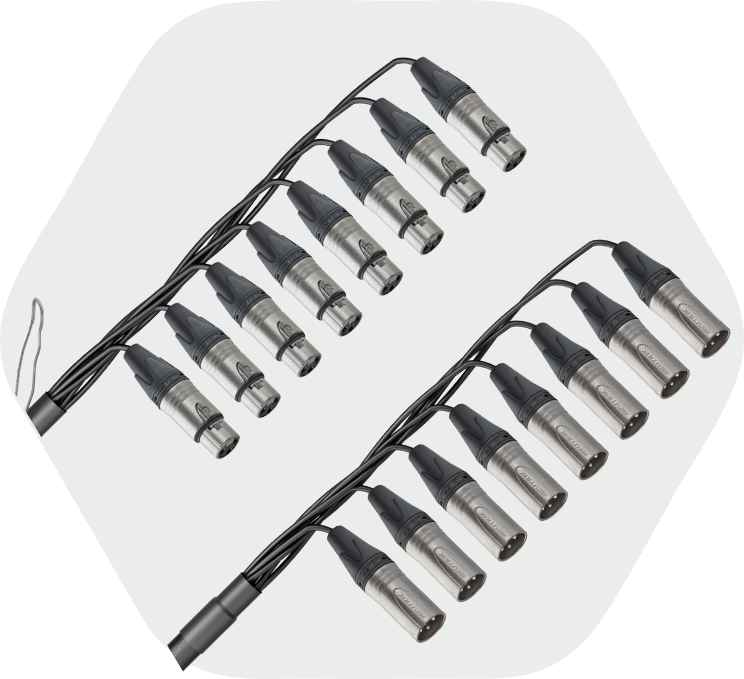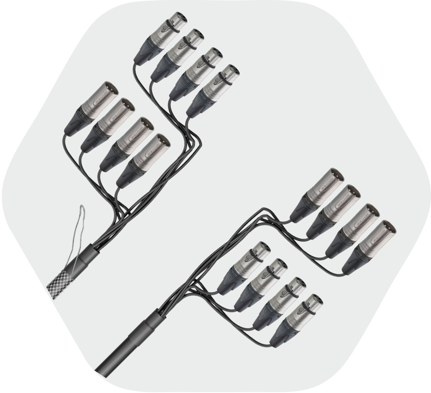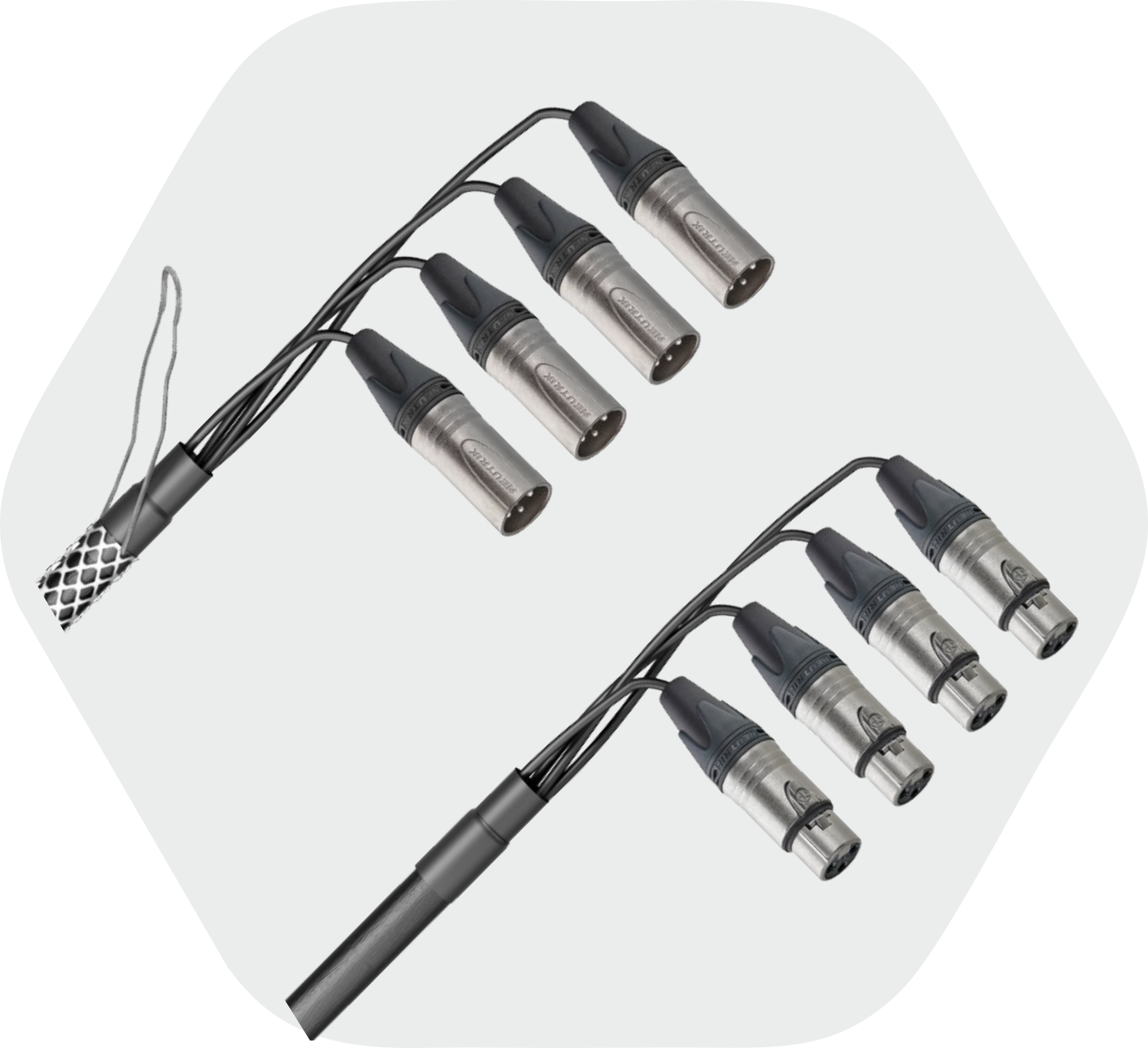 Длина: от 50 см Цвет кабеля: Черный Комплектующие: Коса 1: 4 х XLR3 штекер Neutrik NC3MXX, защитная корзина; Коса 2: 4 х XLR3 гнездо Neutrik NC3FXX; Кабель: Мультикор аналоговый Canare MR202-4AT